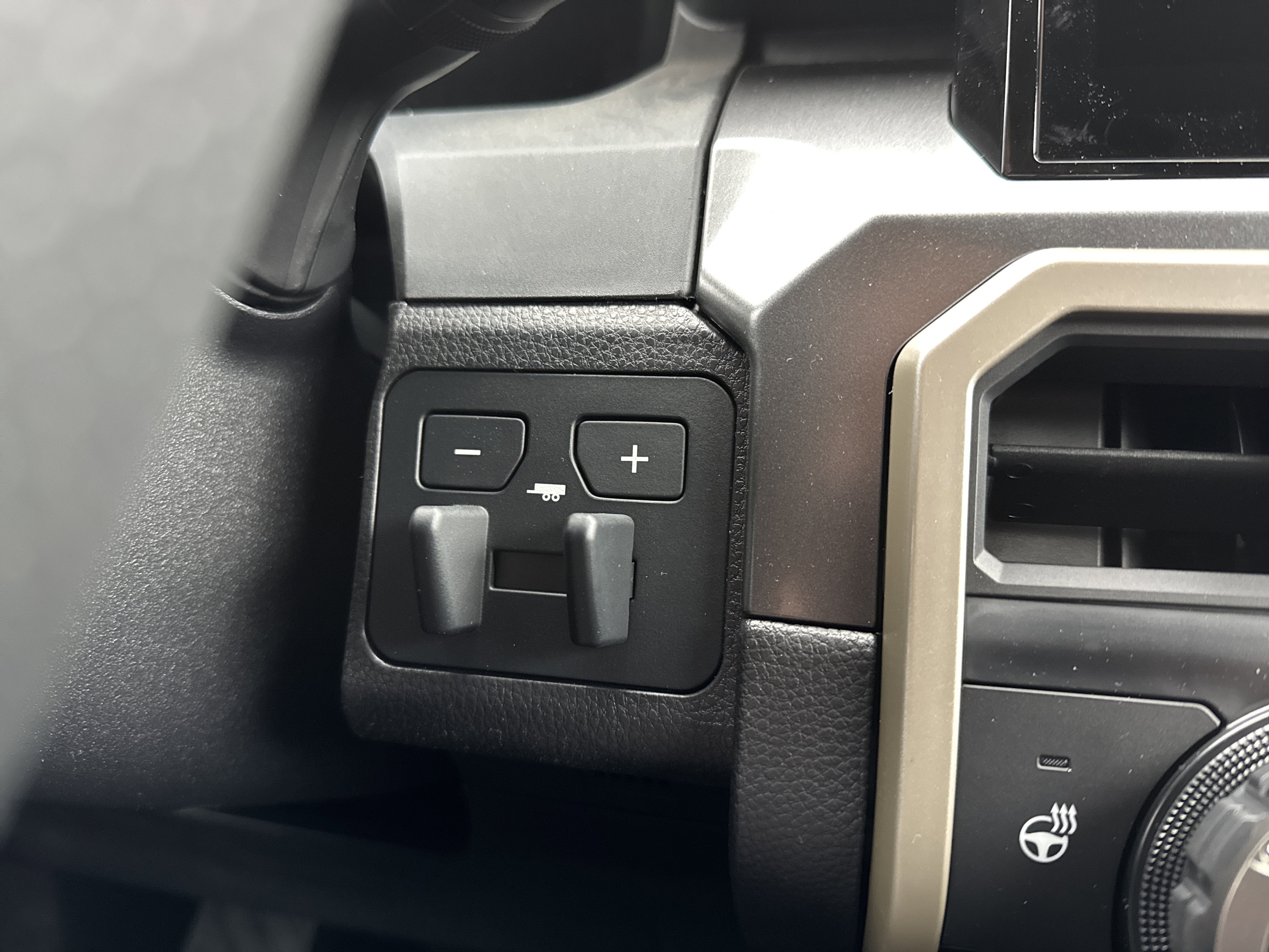 • Leather-trimmed manual tilt/telescopic steering wheel with phone, audio, display/infotainment, and Driver Assist controls