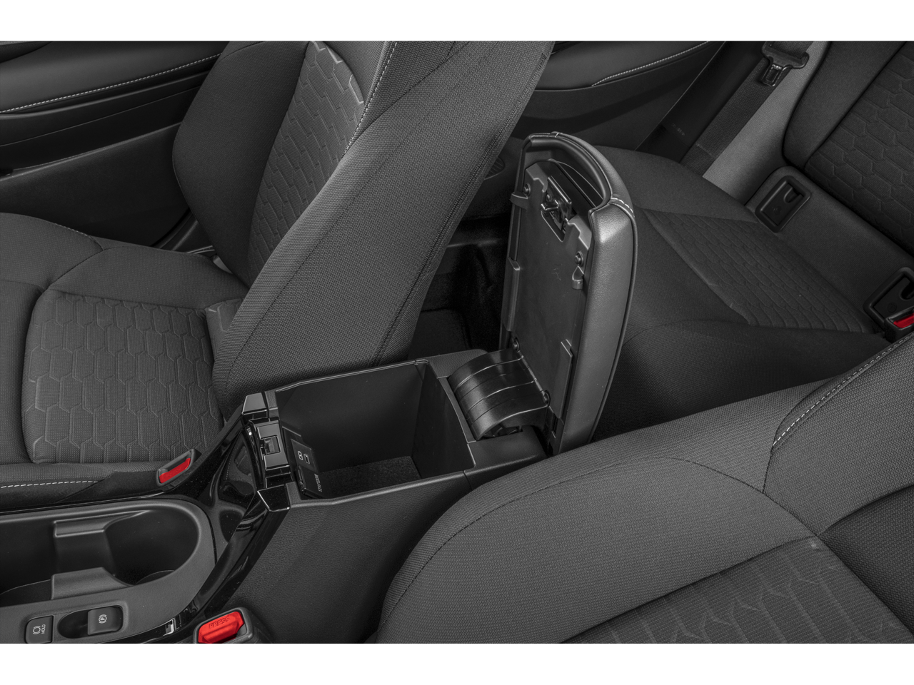 • Covered center console, armrest, and storage