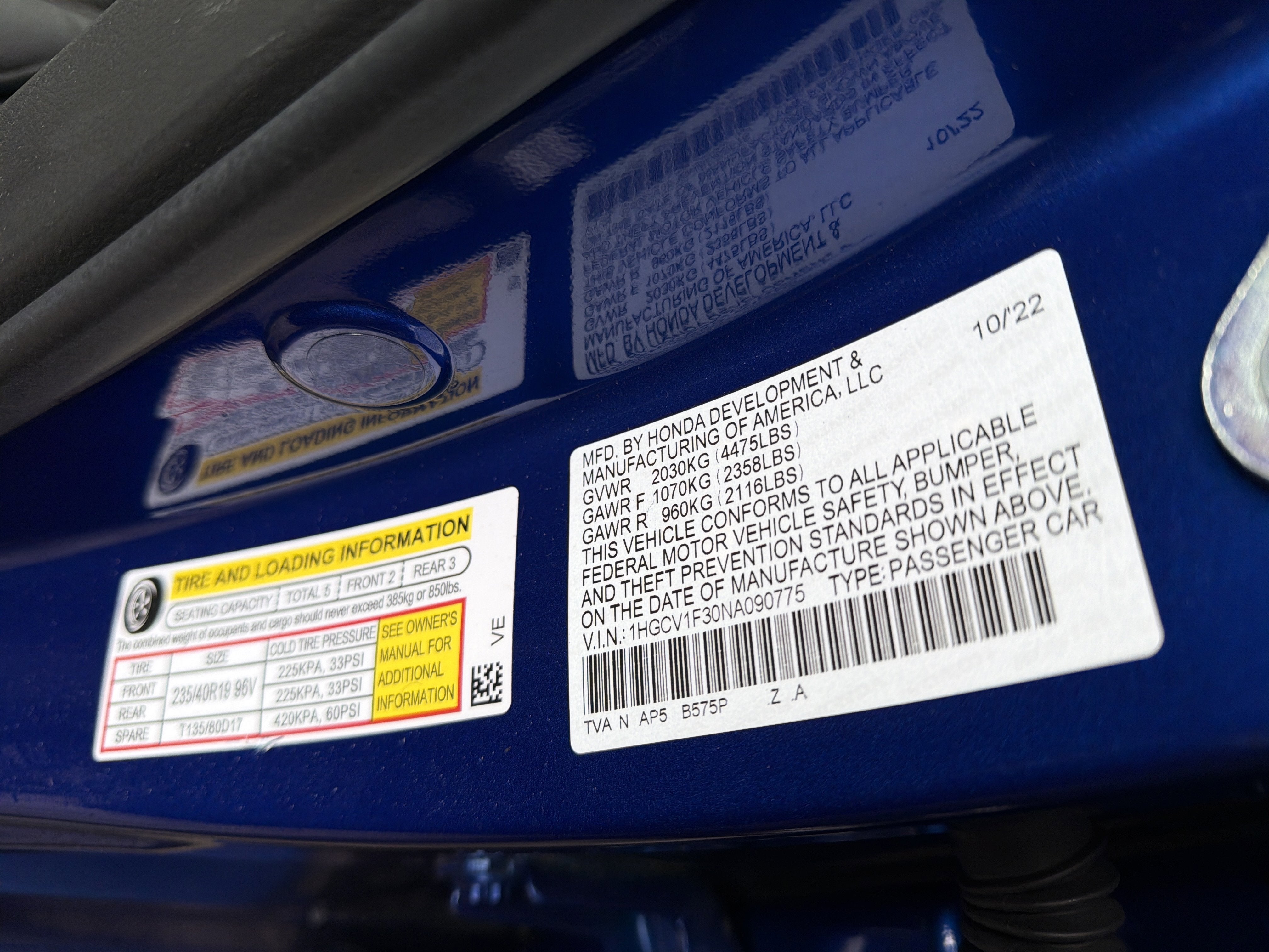- Tires: 235/40R19 96V AS