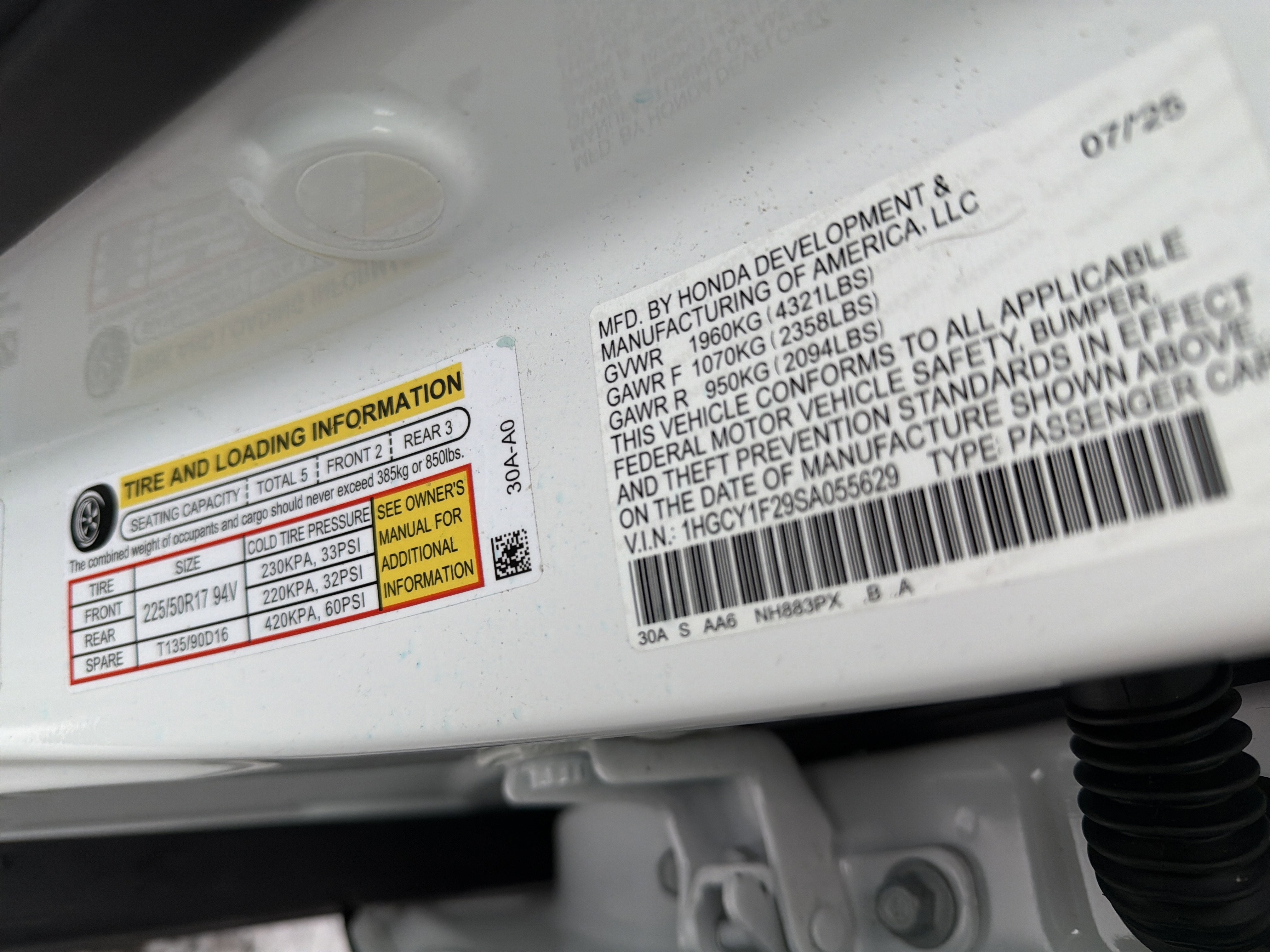 - Tires: 225/50R17 94V AS