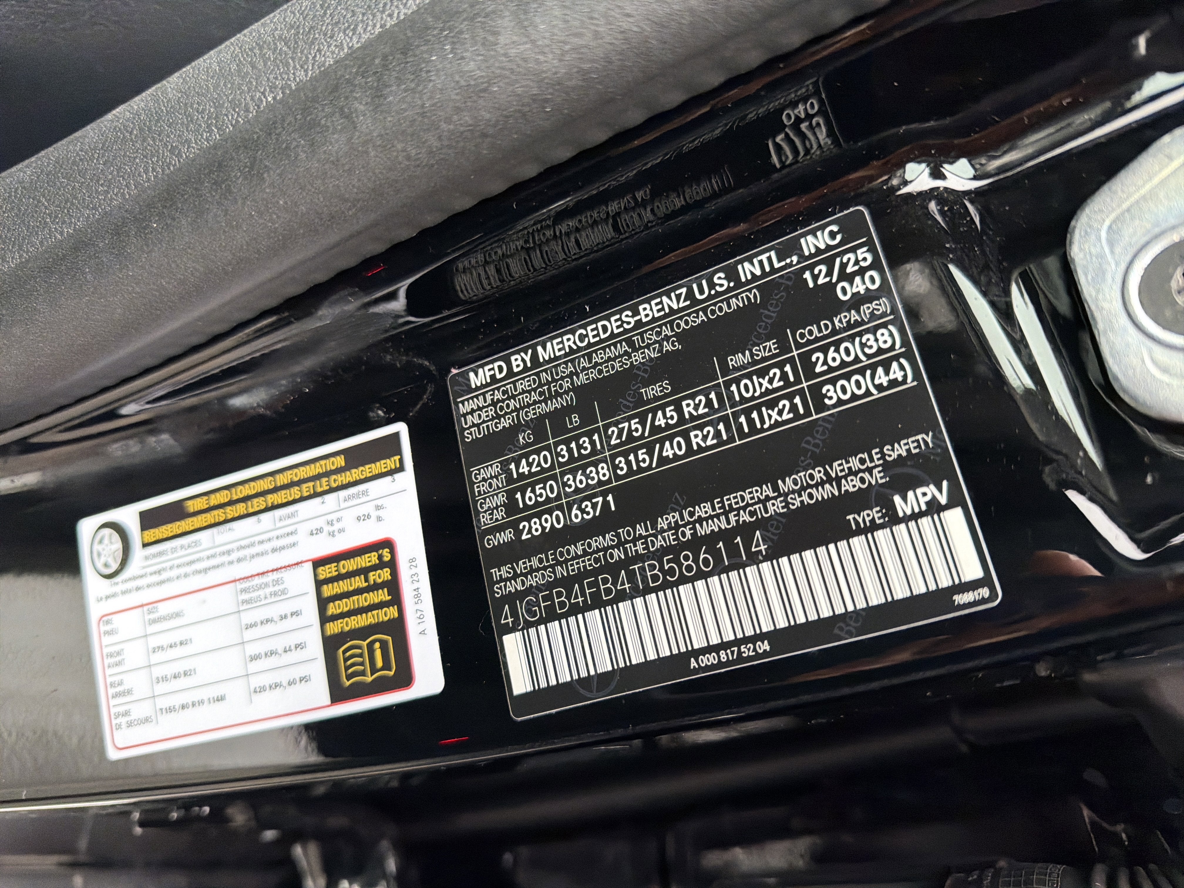 - Front Tire Size: P275/45HR21